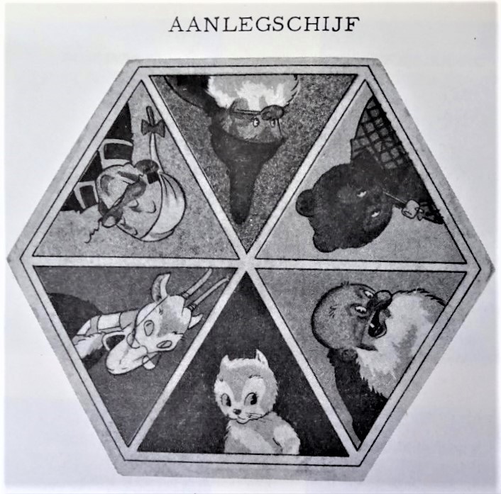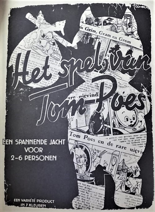 Beschrijving en fotografische weergave -in de kleuren zwart/wit- van alle onderdelen van het spel van Tom Poes ("Tom Poes spel").
