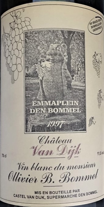 Op het etiket een afbeelding van het oude Bommelbeeld. (opvallend is de taalfout in de naam: Ollivier B. Bommel)