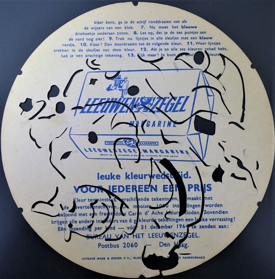 Ronde tovertekenschijf waarmee je door te draaien de aangegeven figuur kon tekenen