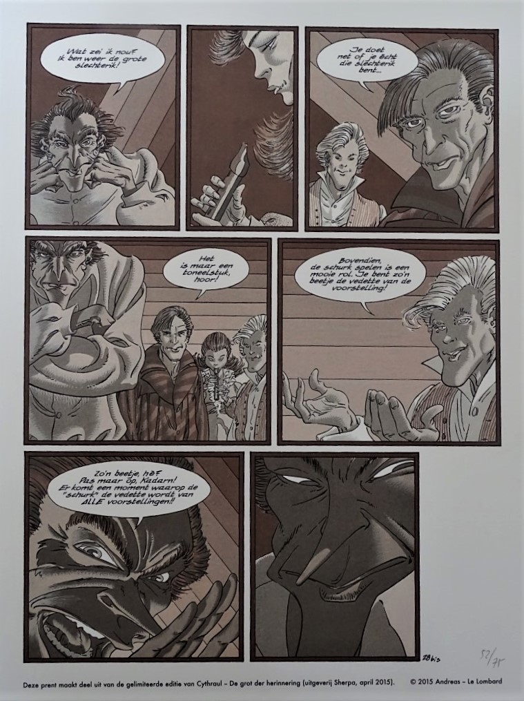 75 exemplaren werden voorzien van twee extra prenten: een ingelijmde prent, die gesigneerd werd door Andreas en een losse prent van pagina 28bis.