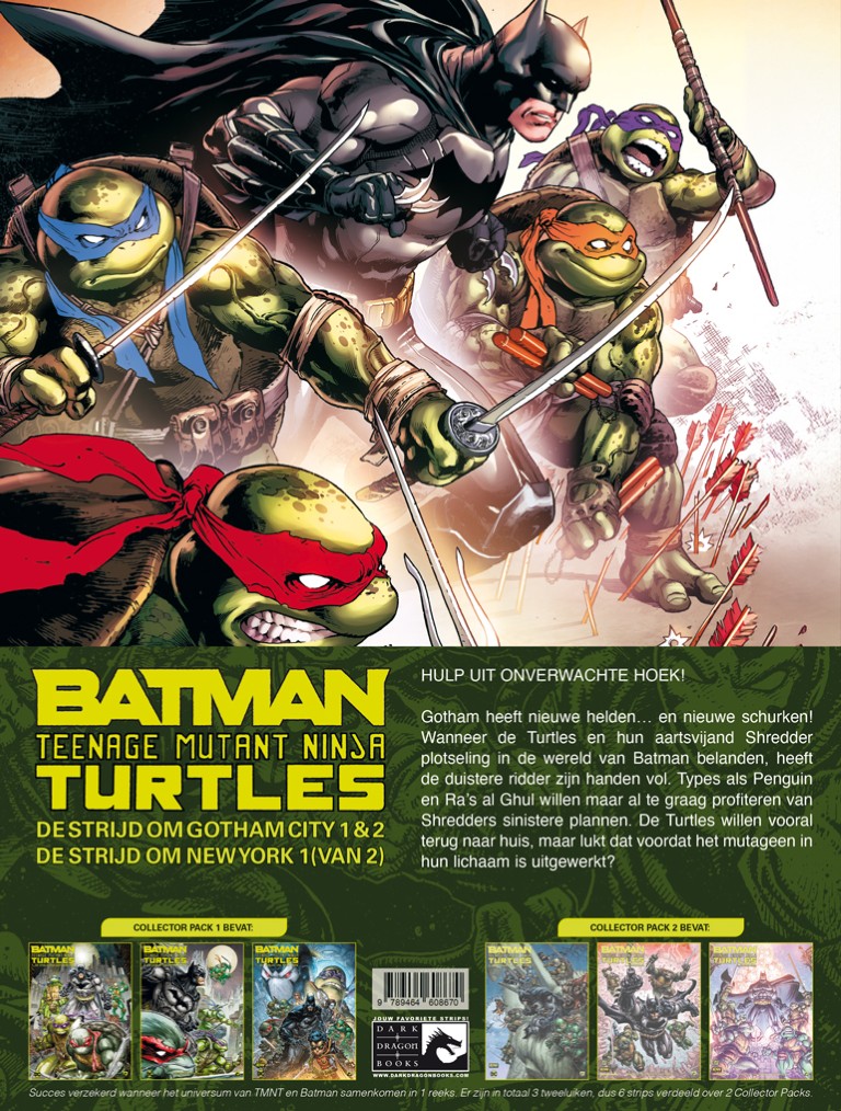 Succes verzekerd wanneer het universum van Teenage Mutant Ninja Turtles en Batman samenkomen in één reeks. Er zijn in totaal drie tweeluiken, dus zes strips verdeeld over twee collector packs. Ook geschikt voor jongere lezers.