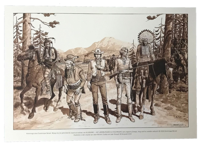 En dit nieuwe tweeluik is nog maar het begin van een meeslepende reeks avonturen over de indianenoorlogen, die pas een eind zal vinden in Generaal Geelkop… Een nieuwe stapel Blueberry-goodies dus, in twee edities, met als toegift een exclusieve prent van stripauteur en Blueberry-fan Dominique Bertail, die eerder al (in Arizona Love) een hommageprent van Chihuahua Pearl voor ons maakte…