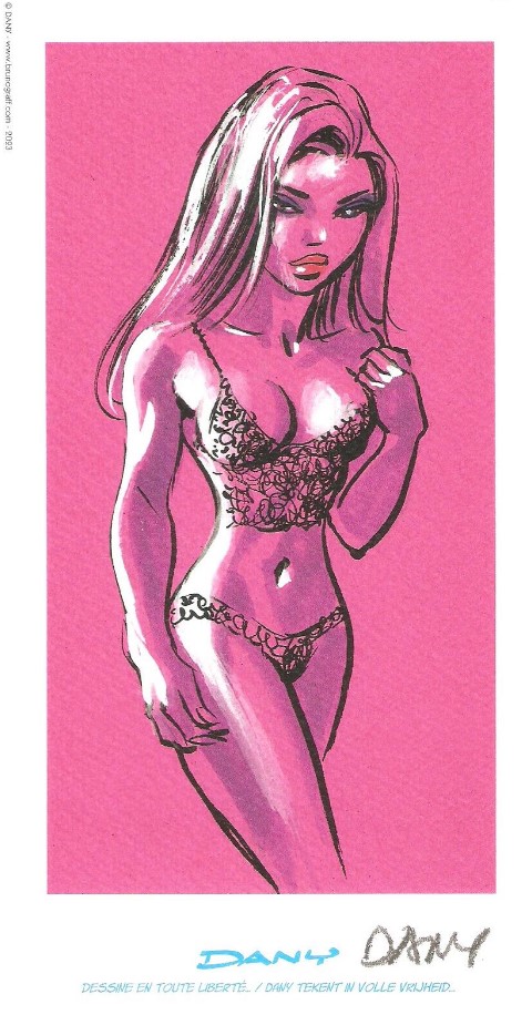 Artbook met werk van Dany, vooral van zijn komische fantasyreeks Roze Bottel. De begeleidende teksten zijn in het Nederlands en Frans