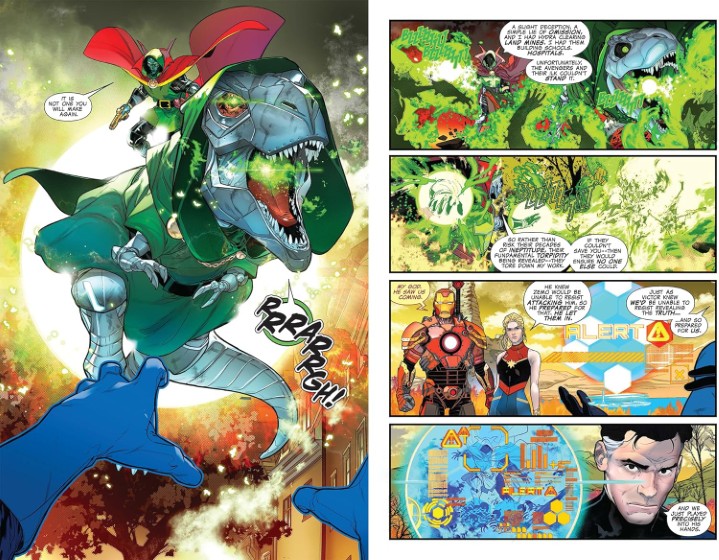 Six months ago, Victor Von Doom saved the world from vampires by assuming the mantle of Sorcerer Supreme — then disappeared behind Latveria’s closed borders. But his absence was merely the calm before the storm — a storm that has now arrived. The world wakes up to a new reality: Doom has magically taken over every broadcast medium on Earth and declared himself the ruler of the planet under the flag of a new United Latveria! And shockingly, impossibly, all global leaders seem to be going along with it. Luckily, whether it’s mind control or Doombots, whatever’s affecting them hasn’t affected Earth’s heroes — so they quickly form a strike team to stop Doom’s machinations. But nothing will go as expected for the Fantastic Four, the Avengers and their allies! What happens when some begin to welcome their new Emperor with open arms, clamoring for ONE WORLD UNDER DOOM?