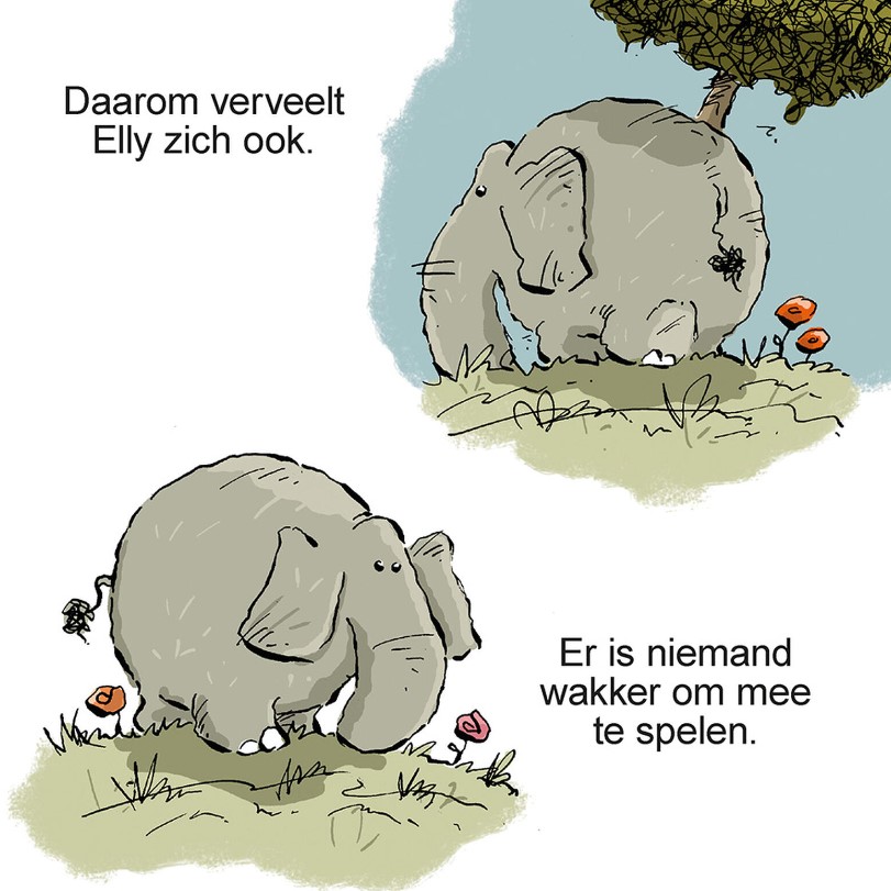 Elly wil graag spelen, maar met wie? Het is warm en al haar vriendjes doen een middagdutje. Wat nu?