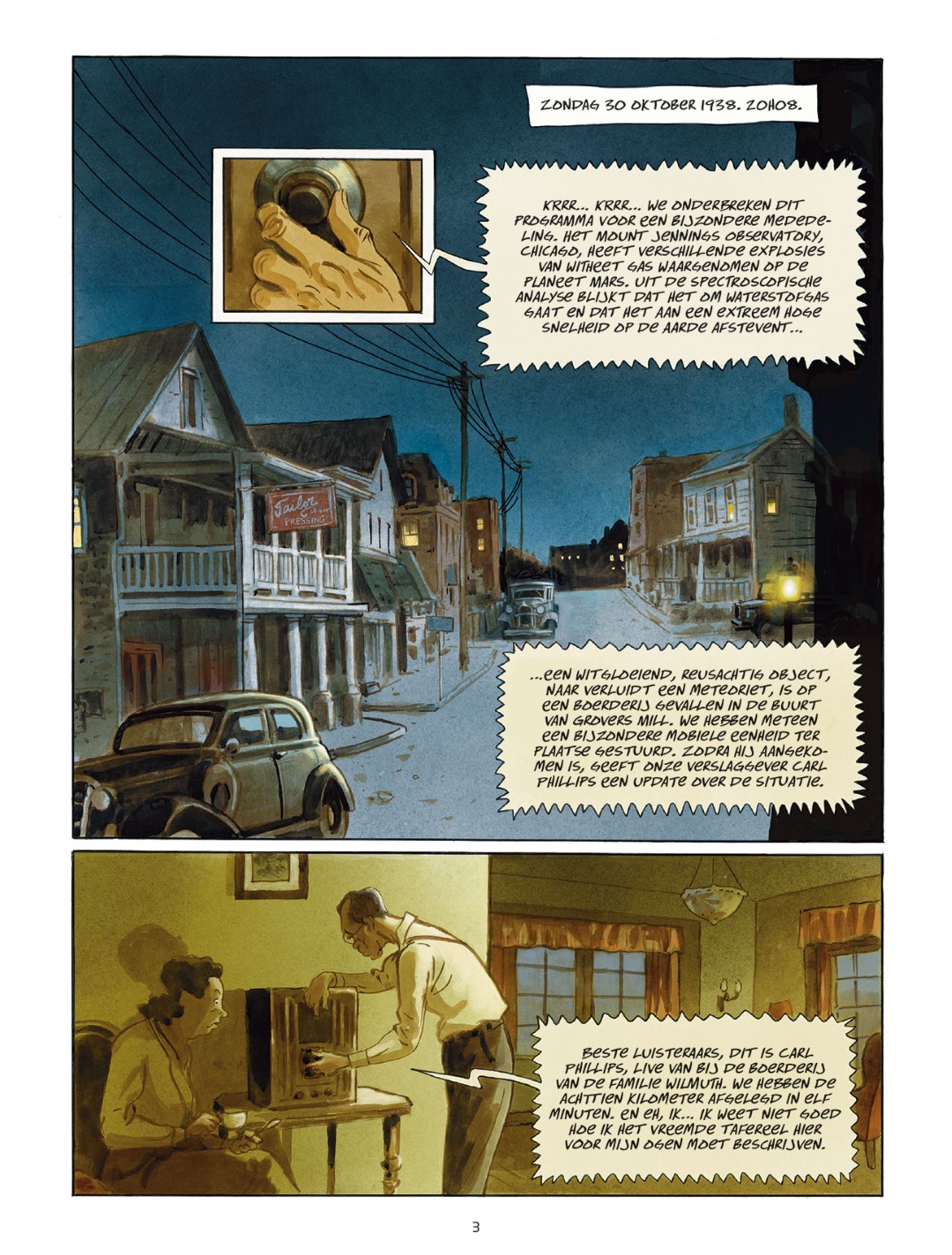 Op 30 oktober 1938 zendt Orson Welles op CBS The War of the Worlds van H.G. Wells uit. De toneelmaker bewerkt de roman tot nieuwsflitsen en maakt het stuk adembenemend reëel. Paniek breekt uit! “Een valse oorlog jaagt het hele land angst aan” titelen de kranten de volgende dag. In het verhaal van Laurent Galandon doodt een man zijn vrouw, voor hij ook zijn zoon neerschiet, om “te ontsnappen aan de slachting door Marsbewoners”. Een gevierde, voormalige journalist, Douglas Burroughs, trekt op onderzoek. Hij schrijft er een boek over.