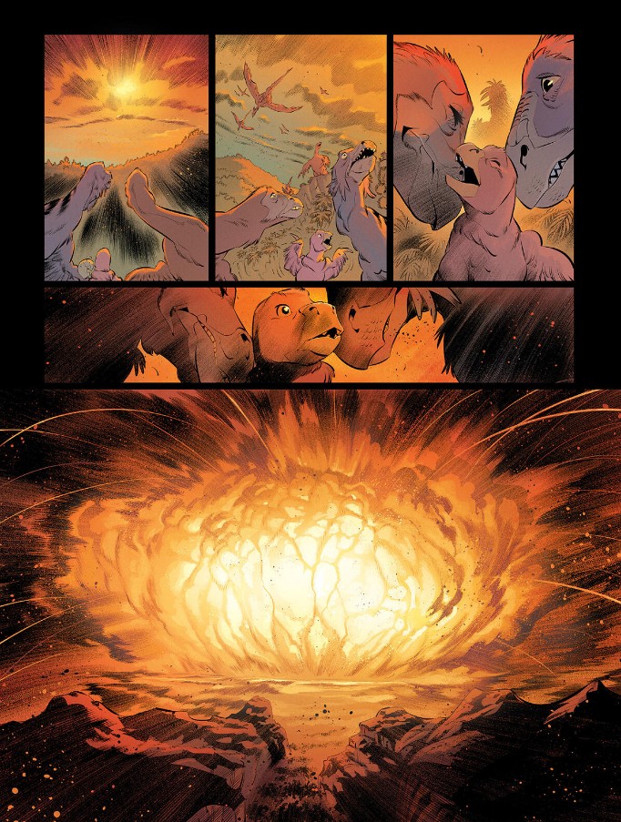De meteoriet die de dinosauriërs met uitsterven bedreigt, stort neer op de aarde. Frank en zijn vrienden vluchten voor de catastrofe en hopen via de vulkaan terug te keren naar de eenentwintigste eeuw. Ze worden bijna vertrappeld door een stormloop van vluchtende dieren en belanden op een mammoetkerkhof.