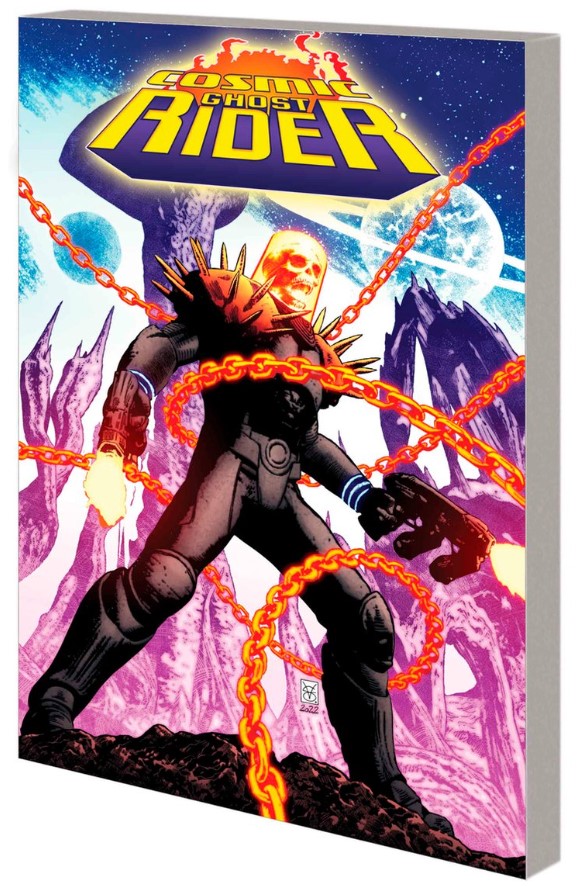 Brace yourself for a burning-skulled battle royale! In a far-flung corner of deep space, the ancient Frank Castle has eked out a quiet life - his days as the Cosmic Ghost Rider finally behind him. But across the universe, a vicious bounty hunter is leaving a trail of bodies in his wake. And his name is…Cosmic Ghost Rider?! When Frank's peaceful existence is shattered, he must suit up once more and face his most savage enemy yet: himself! Elsewhere, another formidable adversary awaits - but which Ghost Rider will the mighty Valkyrie be facing?! As the mystery deepens, the two Cosmic Spirits of Vengeance draw closer to one another for a final confrontation in the depths of space. But first, they both must survive the bevy of bounty hunters, heroes and villains in hot pursuit!