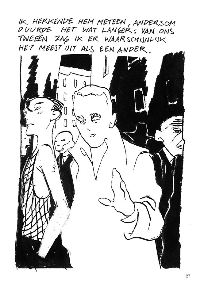 De naamloze verteller in deze geïllustreerde monoloog is getuige, tegen een achtergrond van politieke onrust, van de morele en spirituele ondergang van een voormalig studiegenoot.