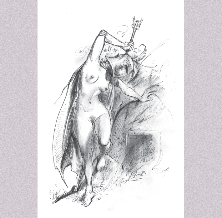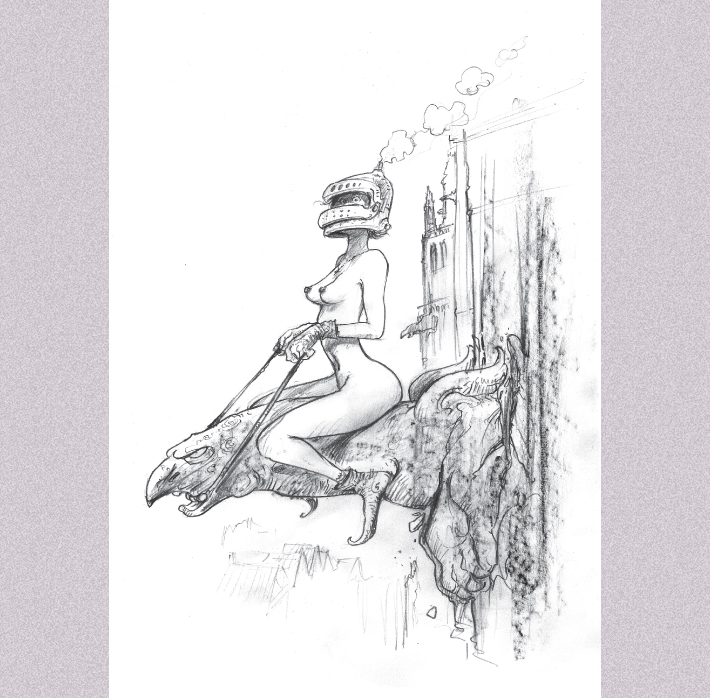 Voor deze eerste Spinsels-uitgave tekende Jan Bosschaert een exclusieve reeks potloodillustraties met meisjes die een ridderhelm dragen, en niets anders. Dompel je onder in Bosschaerts wereldje met sensuele, guitige, waakzame, strijdvaardige, dominante en zwangere vrouwen.