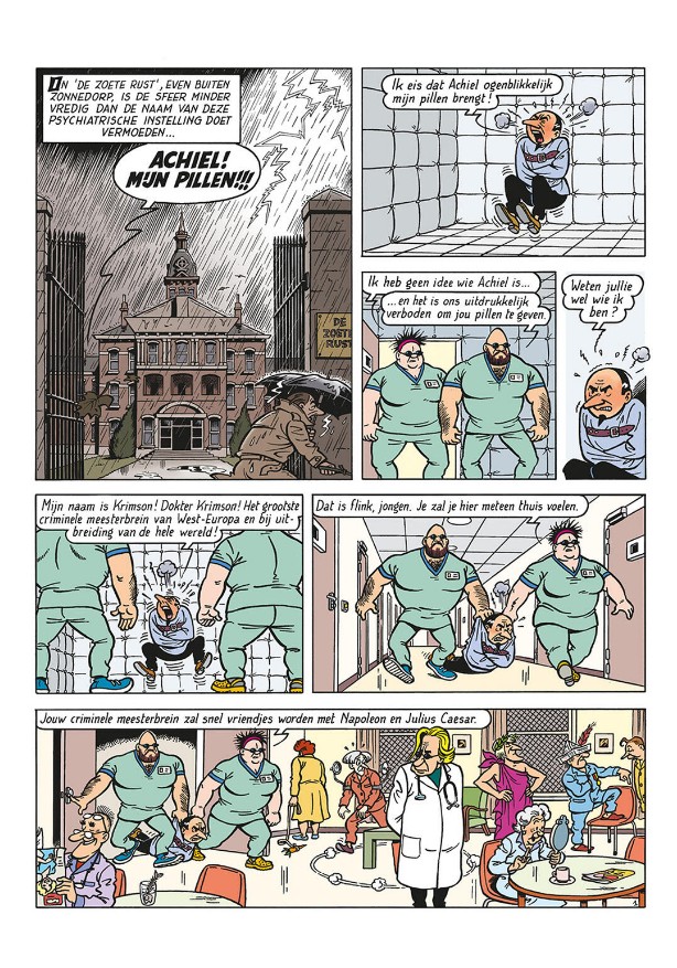 Krimson heeft er zwaar de pest in. Nadat hij voor de zoveelste keer het onderspit moest delven tegen Suske en Wiske, wordt de superschurk opgesloten in de psychiatrische instelling De Zoete Rust. Hij ontmoet er de Koningin van Onderland, die zich in hetzelfde schuitje bevindt. Ook zij trekt keer op keer aan het kortste eind in de strijd tegen Jommeke en zijn vrienden.