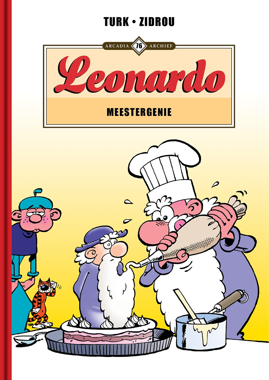 Meestergenie is het vierde deel dat van de komische gagreeks Leonardo bij vzw Arcadia verschijnt. Zoals we ondertussen van Turk en Zidrou gewend zijn, staat het album ook nu weer vol grappige en absurde situaties waarin de - niet zo bescheiden - uitvinder Leonardo de baanbrekende uitvindingen aan elkaar rijgt en zijn - niet zo bijdehands - hulpje Basiel meestal het (on)dankbare slachtoffer wordt van Leonardo's experimenten.In Meestergenie vinden we Leonardo zoals vanouds terug in zijn geboortestad Vinci waar hij zijn uiterste best doet de wereld te bewijzen dat hij en alleen hij de beste, geniaalste uitvinder van zijn tijd en alle tijden daarvoor is. Of het nu de teletijdmachine, de omniumverzekering of de allereerste graphic novel is, niets is gek genoeg om uit het brein van Mona Lisa's geestelijke vader te ontspruiten.Hoewel de stripreeks Leonardo reeds sinds 1974 bestaat en in het Frans meer dan 55 titels op de teller heeft staan, lijkt er geen sleet te komen op de creatie van Turk en Bob De Groot. Met Zidrou als nieuwe scenarist zitten Leonardo, Basiel, Saartje & co nog jaren gebeiteld om de stripliefhebber vele uurtjes leesplezier te bezorgen