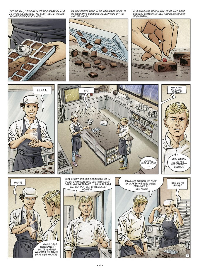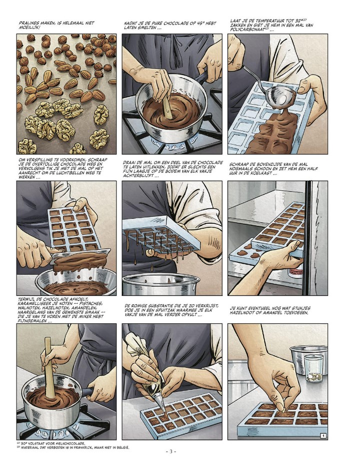 Laatste deel van de trilogie waarin tekenaar Chetville (Sam Lawry, Sienna) en scenarist Eric Corbeyran (met de hulp van Bénédicte Gourdon) de lezer introduceert in de wereld van de pralines en daar nog een spannend verhaal in verweeft ook.
