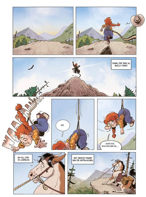 Dan neemt Molly een beslissing: ze stapt zélf in het zadel, samen met Carson. Ze neemt de boeken mee de bergen in, om haar zus te vervangen, haar familie te helpen én hun geliefde paard te redden. Onderweg wacht haar een tocht vol gevaar, humor, onverwachte ontmoetingen en kleine heldendaden — precies zoals in de avonturenboeken die ze zo graag leest.