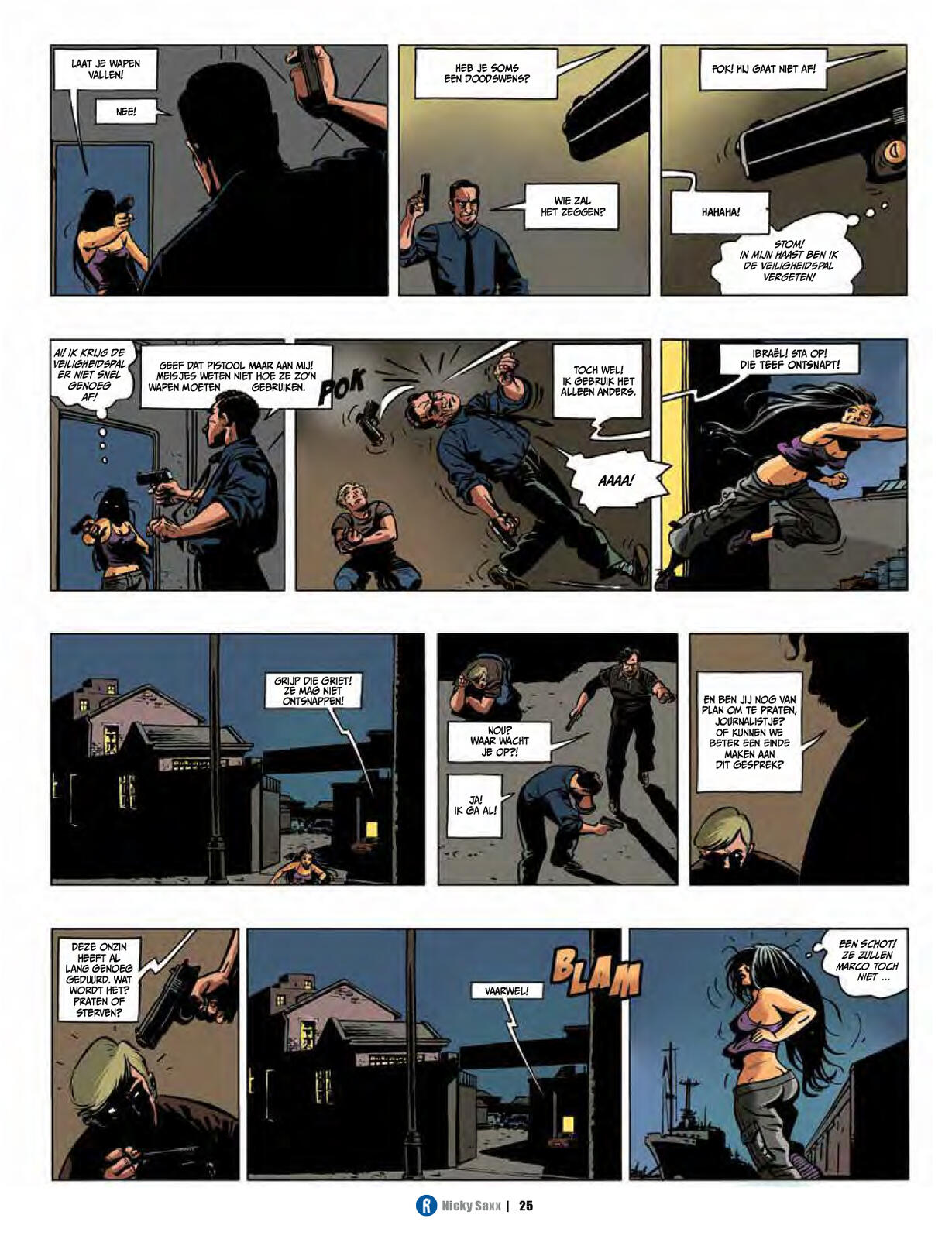 Om zowel lezers van het eerste uur als de jongere generatie kennis te laten maken met een reboot van de stoere Nicky Saxx, heeft Reboot Comics de zwart-witte krantenstrip van Minck Oosterveer en Willem Ritstier volledig ingekleurd en van een nieuwe lettering voorzien.