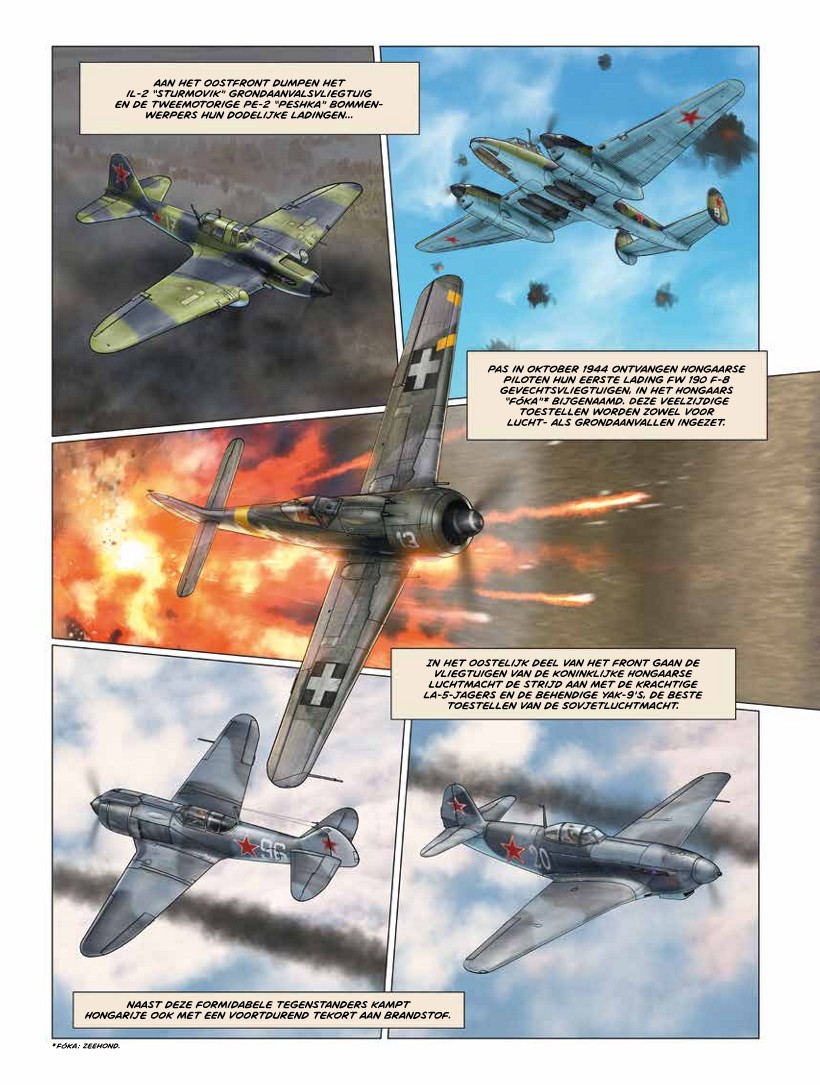 Het was niets meer dan een kort maar intensief gevecht tussen een Hongaarse Me 210 Ca-1 bommenwerper en negen Sovjet Yak-9-jagers. Dit is geen avonturenroman, maar het waargebeurde verhaal van de grootvader van de auteur. Hij was degene die hem het verlangen gaf om te tekenen.