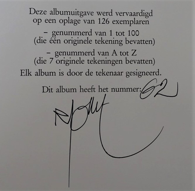 100 exemplaren genummerd en gesigneerd met één originele tekening.