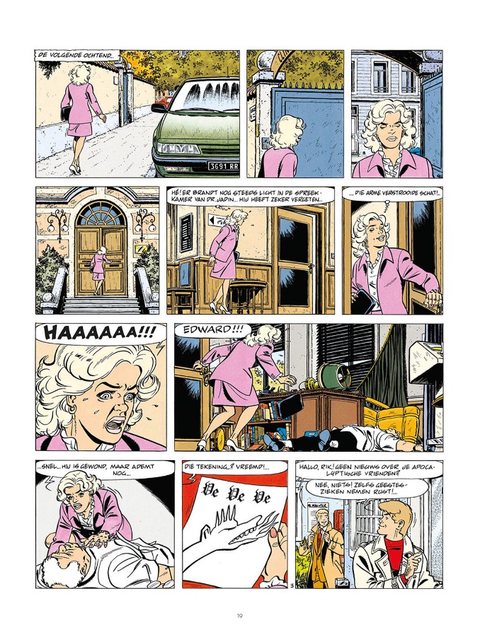 Een anonieme schrijver zaait angst en verwarring in een stadje door dreigbrieven te sturen die verwijzen naar ‘het beest van de Apocalyps’, het beroemde tapijt uit de vijftiende eeuw. Tegelijk valt een geheimzinnige blinde de bestemmelingen van die brieven aan met zijn blindenstok. Rik staat oog in oog met Cagliostro, de meester-illusionist, en H. Howard, de kluizenaar die honderd miljard waard is. Rik probeert de dader te ontmaskeren van de ‘dodelijke improvisatie’ die plaatsvindt tijdens een steekspel met woorden tussen acteurs. En vermomd met het ‘masker van de angst’ pleegt een populaire held uit griezelfilms allerlei misdaden.