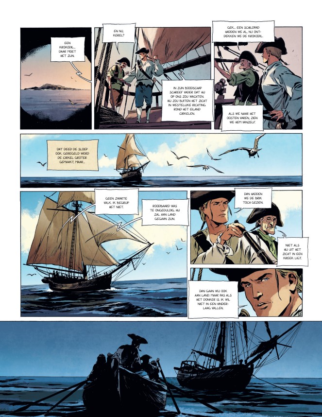 Wanneer Erik en Driepoot het eiland van de Krokodil eindelijk bereiken, stellen ze vast dat Roodbaard en de bemanning van De Zwarte Valk al zijn verdwenen. De demon van de Caraïben en zijn adoptiefzoon zetten hun zoektocht naar Baba ijverig voort, tot het spoor hen leidt naar de kusten van het Spookeiland.