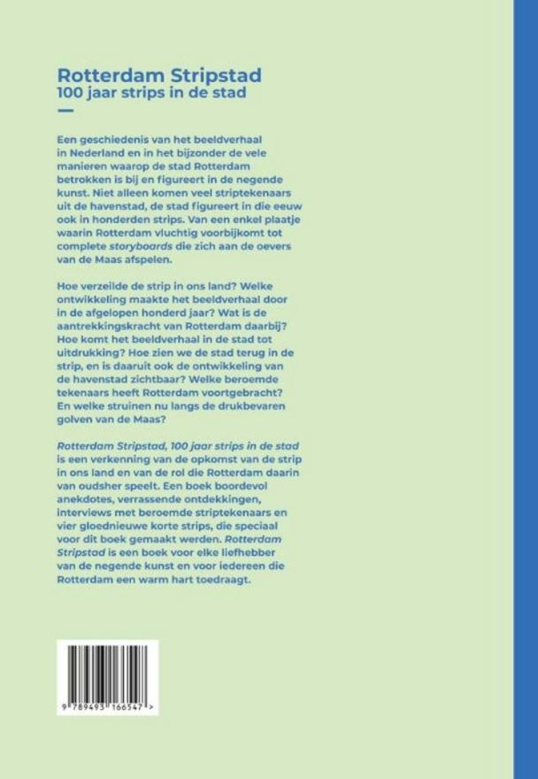 Een geschiedenis van het beeldverhaal in Nederland en in het bijzonder de vele manieren waarop de stad Rotterdam betrokken is bij en figureert in de negende kunst. Niet alleen komen veel striptekenaars uit de havenstad, de stad figureert in die eeuw ook in honderden strips. Van een enkel plaatje waarin Rotterdam vluchtig voorbijkomt tot complete storyboards die zich aan de oevers van de Maas afspelen.