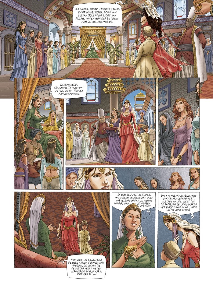 Verborgen achter muren, gordijnen en sluiers scherpt deze mooie, ambitieuze jongedame haar charmes en intelligentie aan. Zij gooit alles in de strijd om haar doel te bereiken: het hart van de sultan veroveren.