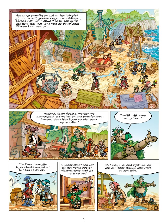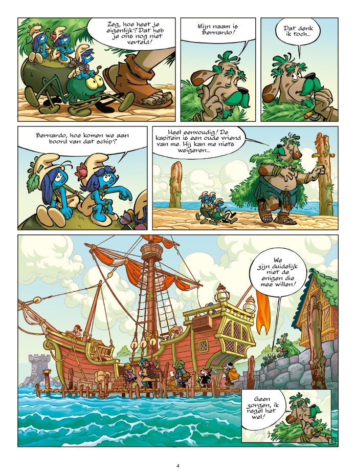 Pepermunt, Smurfstorm en Smurfbloesem zijn nog altijd op zoek naar het Land van de Smurfstenen. Samen met hun nieuwe vriend Bernardo belanden ze in een streek waar de inwoners er bijzonder onsmurfig uitzien... Het viertal moet een boot nemen, maar ze hebben helemaal geen geld om de overtocht te betalen. Ze zullen stiekem aan boord moeten smurfen om hun avontuurlijke reis verder te zetten