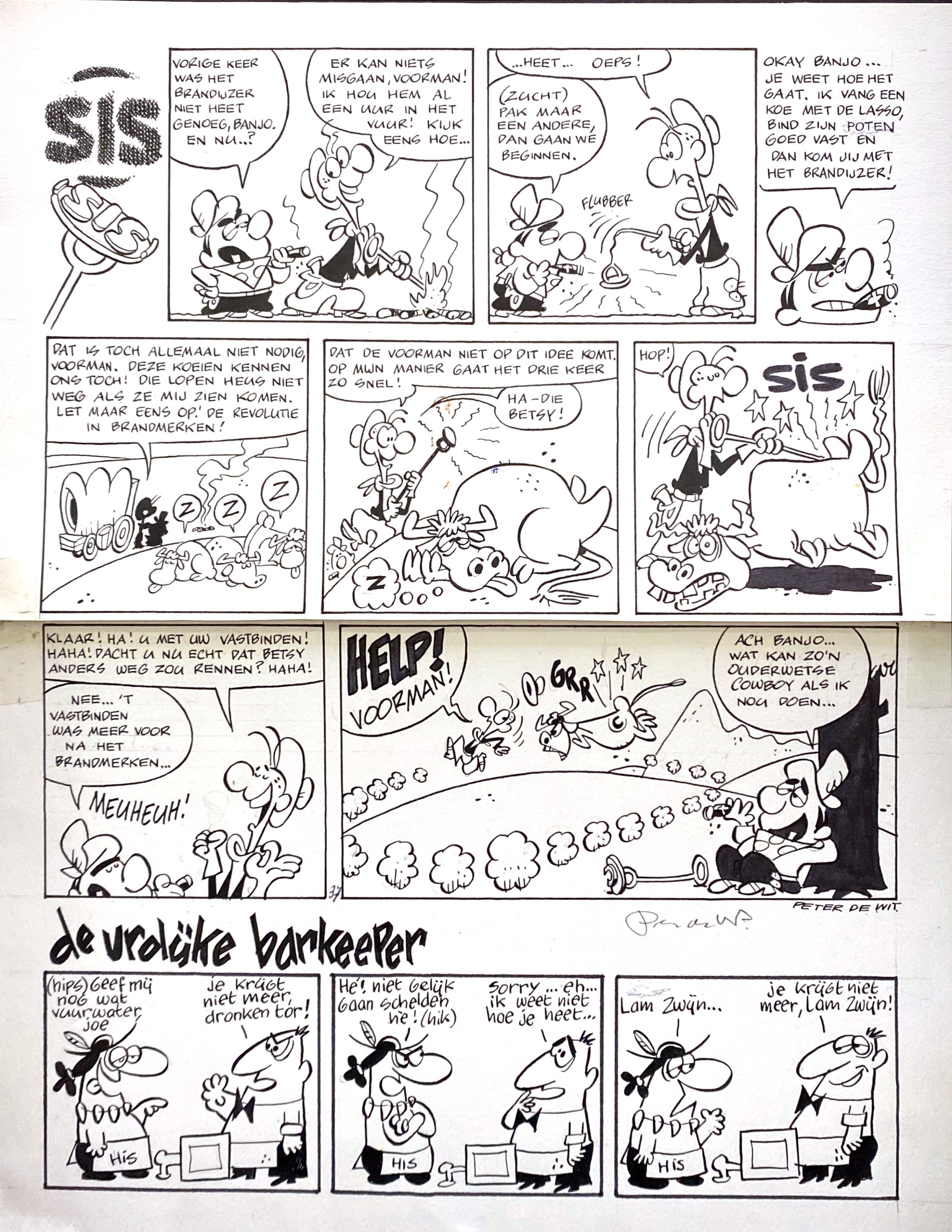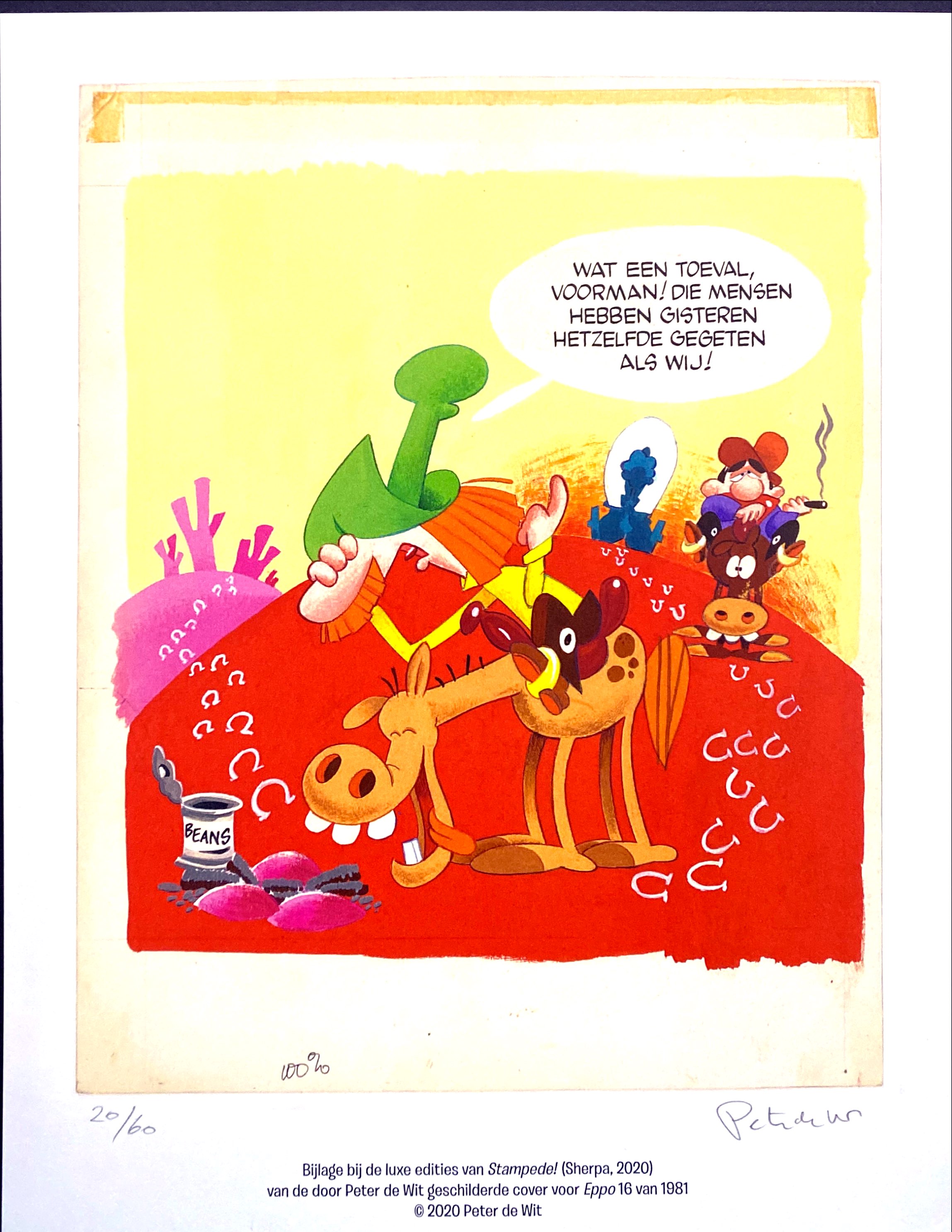 Wie kent niet de humorstrips van Sigmund-auteur Peter de Wit? Veel van zijn werk is al in boekvorm verschenen, maar zijn cowboystrips uit de jaren ’80 zijn nog nooit gebundeld. Maar nu is het tijd voor een bonte verzameling van Peter de Wits leukste gagstrips, een ruime selectie van Stampede!, De cowboys en Kleine Hihahoeha, die eerder verschenen in Eppo, Nieuws van de dag en SjoSji… Met een voorwoord van De Wits Vlaamse tegenhanger Willy Linthout en een stuk of wat achtergronddossiers!