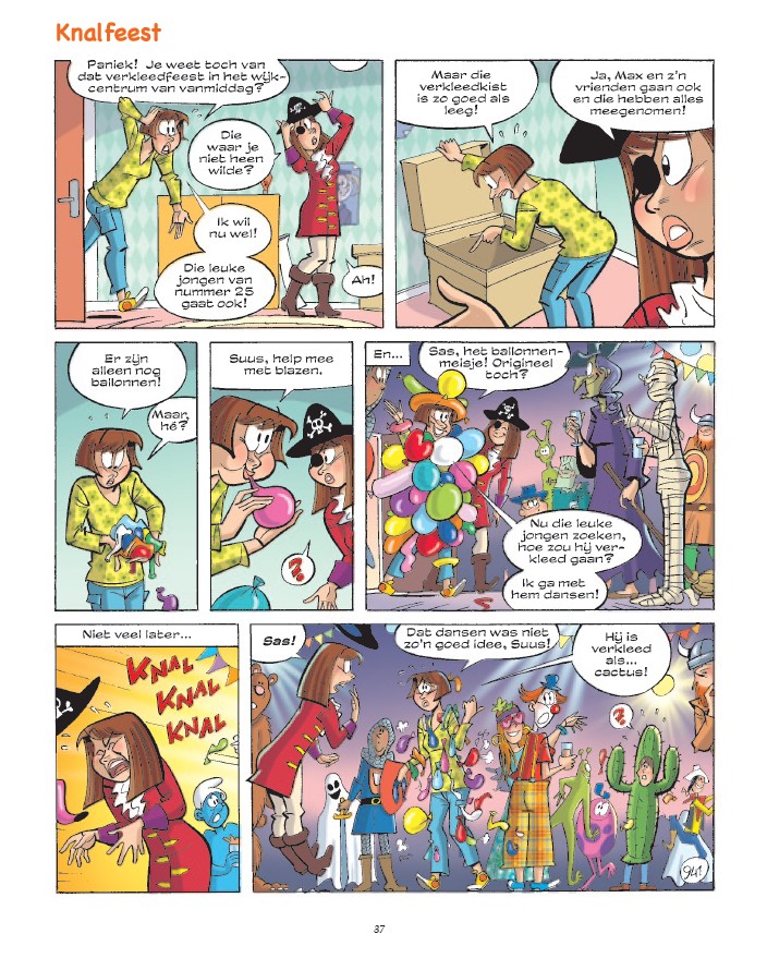 In ‘Knalfeest’ leren Suus en Sas Yun kennen met haar magische kunsten, maakt Suus als keeper hands, ontdekt Sas een leuke jongen op nummer 25 en waant op- paskindje Sam zich Koning Sam.