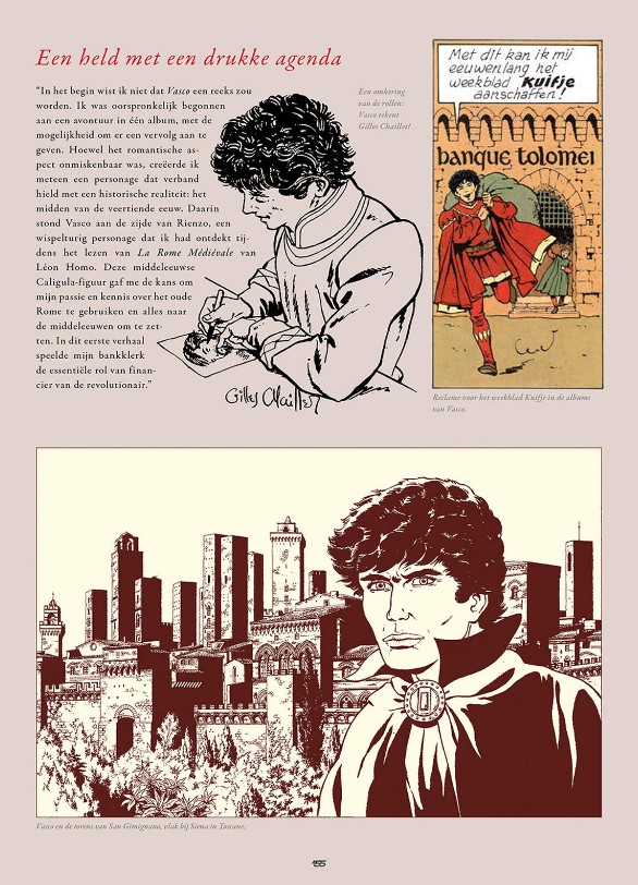 Vasco is een creatie van Gilles Chaillet, een voormalig assistent van Jacques Martin voor Lefranc en Alex die in 1979 in Kuifje zijn eigen reeks creëerde over de Italiaanse jongeman Vasco Baglioni, een klerk bij een grote bank in Siena en een onvermoeibare reiziger. Hij doorkruist in de veertiende eeuw de wegen en zeeën van het Westen en het Oosten. Terwijl zijn land de renaissance induikt, gaat de knappe Italiaan om met de groten der aarde en neemt hij, dankzij zijn status als bankier, deel aan de intriges in een wereld waarin geld toen al een drijvende kracht achter oorlogen is.