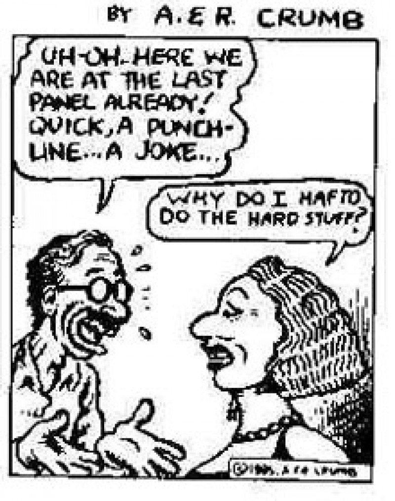 In 1981, Crumb produced and edited a new comic magazine called “Weirdo” which included the work of other artists. Aline’s and Robert’s daughter Sophie was born at this time. In the mid-eighties, Robert decided to let Peter Bagge (and eventually Aline) take over the job as editor of Weirdo so that he could spend more time doing his own comics. While still contributing to “Weirdo,” he created the “Hup 1-4” series in the late 1980's and early 90's.