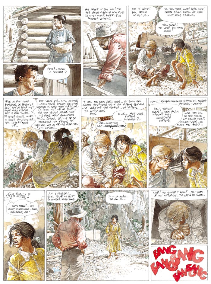 We maken het eind van een tijdperk mee. De 20ste eeuw is slechts een paar Colt-schoten verwijderd. Een wereld is bezig te verdwijnen. Het Wilde Westen maakt zich op zijn mythen bij te zetten. Het jonge Amerika staat voor een uitdaging en Hermann schetst op de voor hem zo karakteristieke, onnavolgbare wijze wat de mens beweegt. De mens met al zijn laagheden en grootsheid, staand in de naakte werkelijkheid.