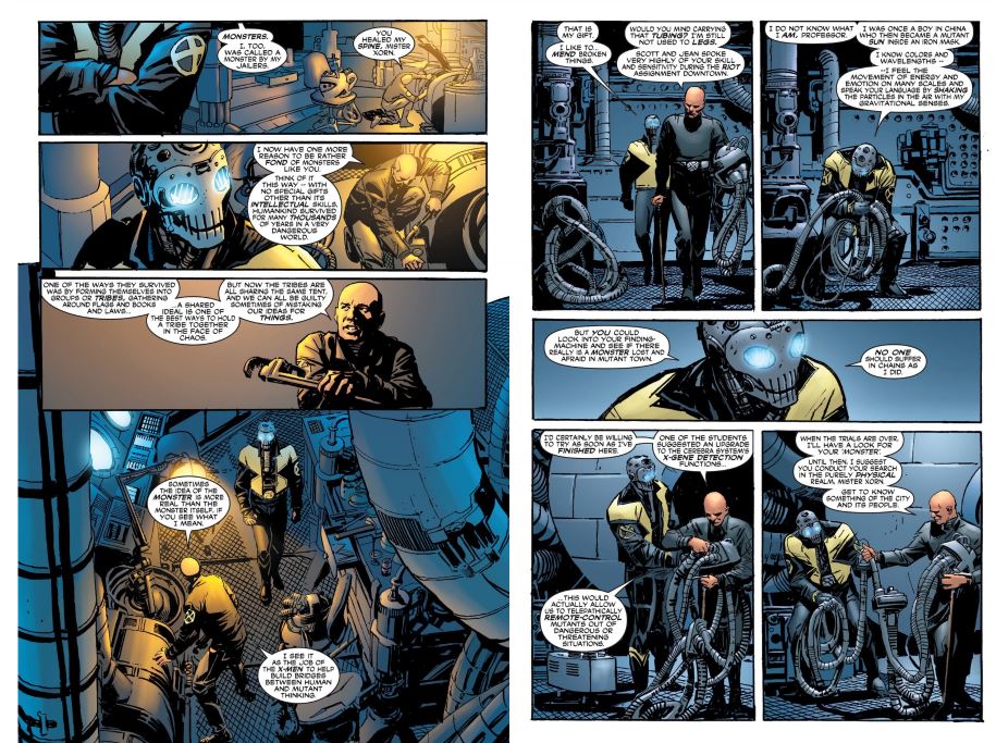Continuing Grant Morrison's Eisner Award-winning run! A riot has broken out in Mutant Town! Xorn, Cyclops and Phoenix head out to quell the violence - but will the task of battling an anti-mutant mob prove more difficult than the X-Men imagined? Meanwhile, Professor X has established an X-Corp office in Paris for mutants in need - and they undertake their first mission after a distress signal is sent out from deep within the Channel Tunnel. But who, or what, is Weapon XII?! Xorn takes the special class into the woods for a lesson they won't soon forget, romantic sparks fly between Scott Summers and Emma Frost, Polaris returns amid the wreckage of Genosha and the Xavier Mansion is rocked by a shocking murder! Or is everything not quite as it seems?